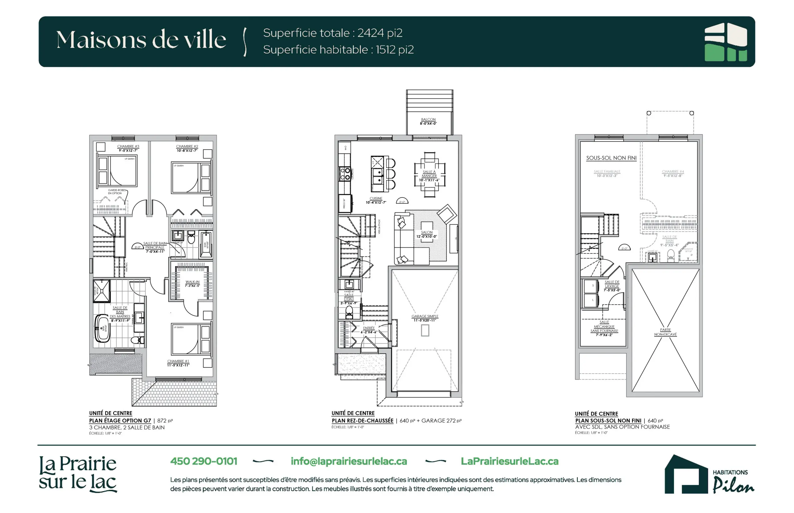 With eight interior configurations to choose from, you can customize your space to suit your needs. Depending on the model you choose, it is possible to have up to three bedrooms and two bathrooms upstairs. The versatile basement also offers several layout options: a family room, a bathroom, and one to two bedrooms. The laundry room can be installed upstairs or in the basement, depending on the configuration chosen.