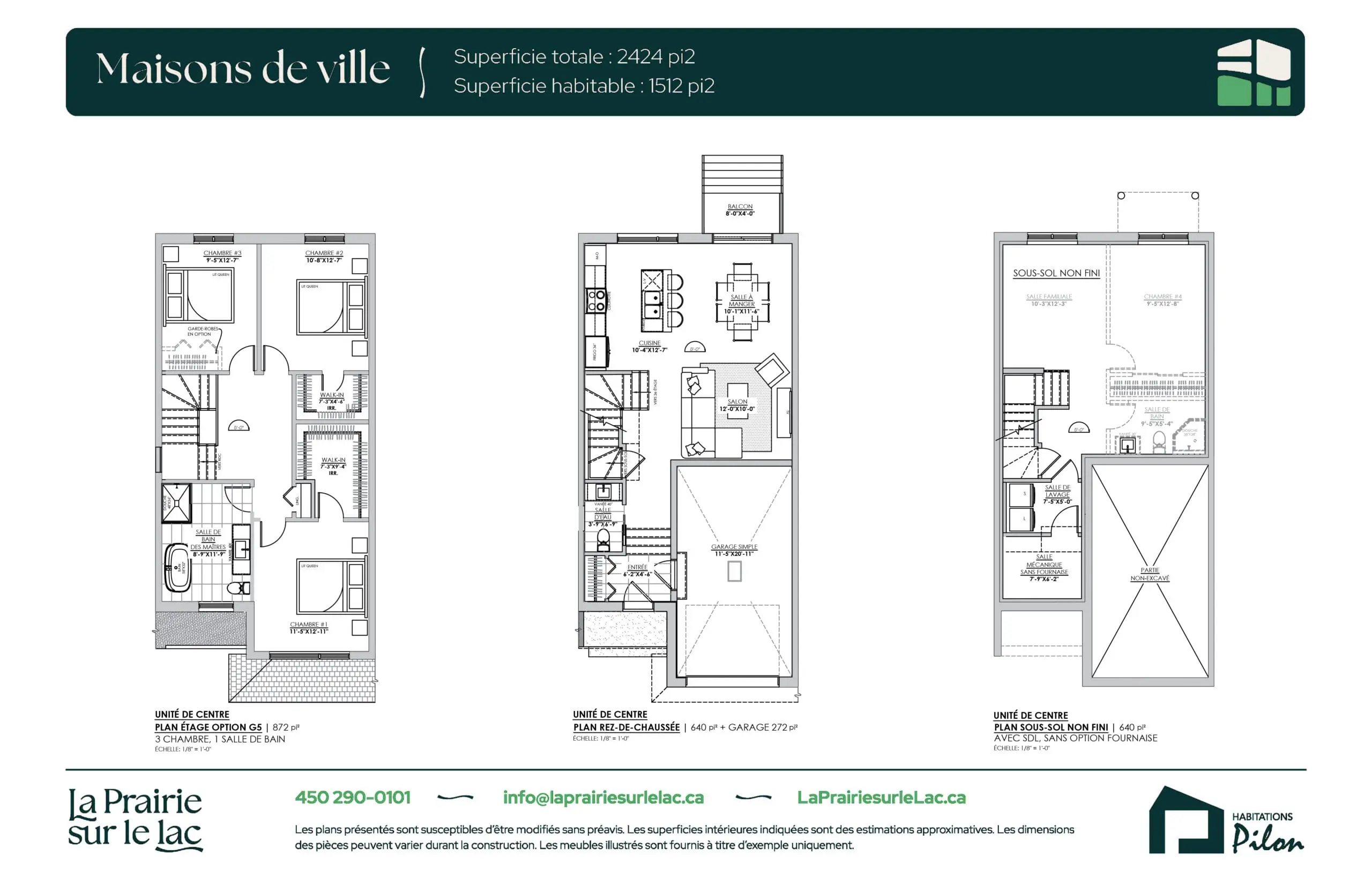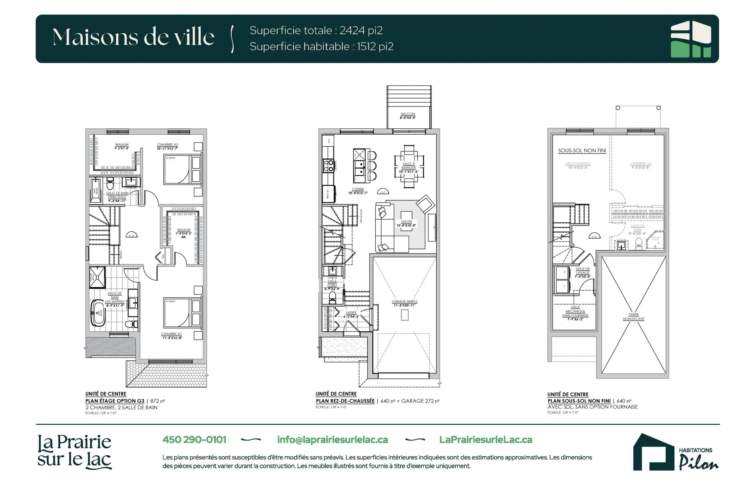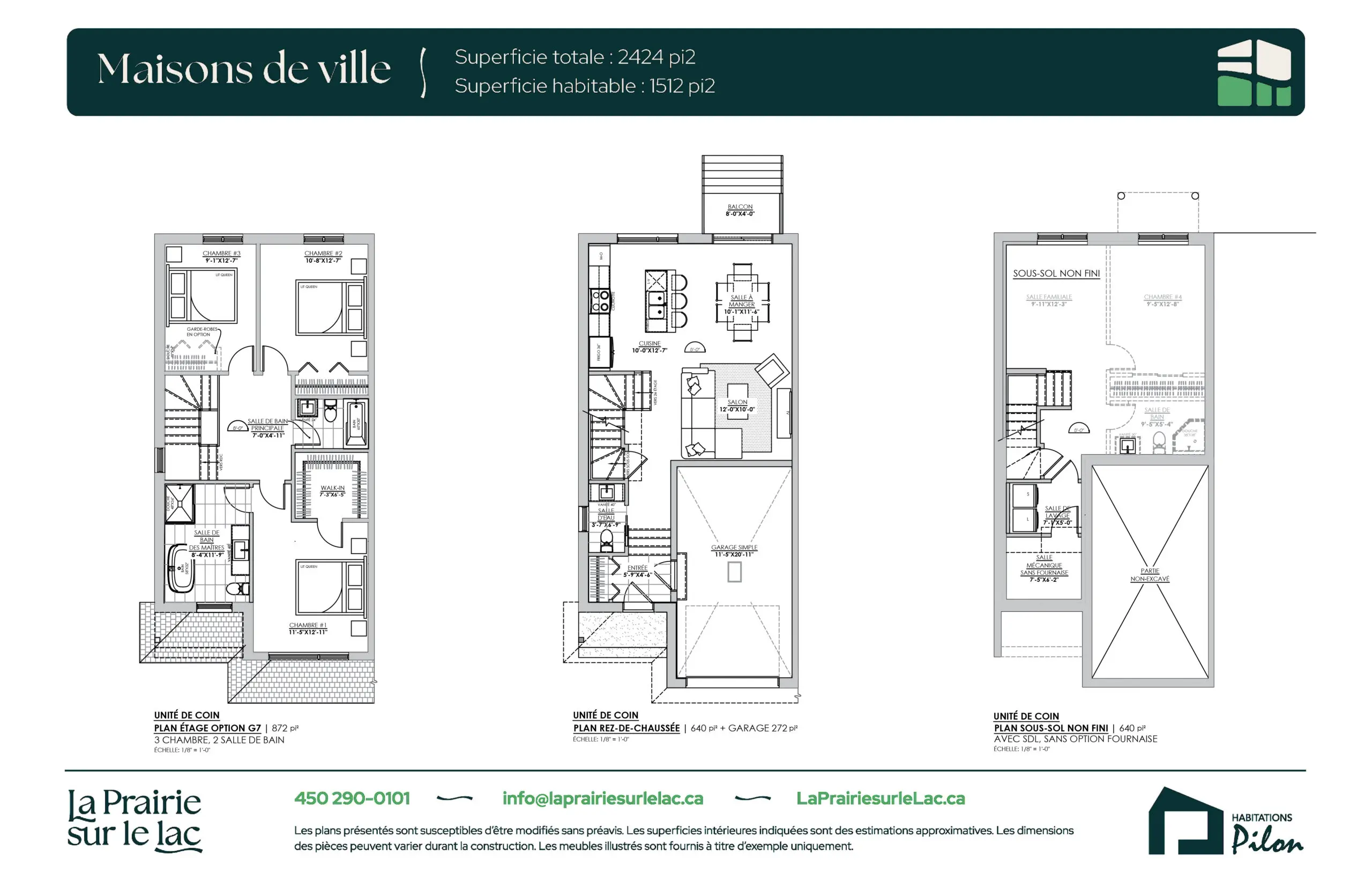 Grâce à huit configurations intérieures, vous pouvez personnaliser votre espace en fonction de vos besoins. Selon le modèle choisi, il est possible d’aménager jusqu’à trois chambres et deux salles de bain à l’étage. Le sous-sol polyvalent offre également plusieurs possibilités d’aménagement : une salle familiale, une salle de bain et de une à deux chambres. La salle de lavage peut être installée à l’étage ou au sous-sol, selon la configuration retenue.
