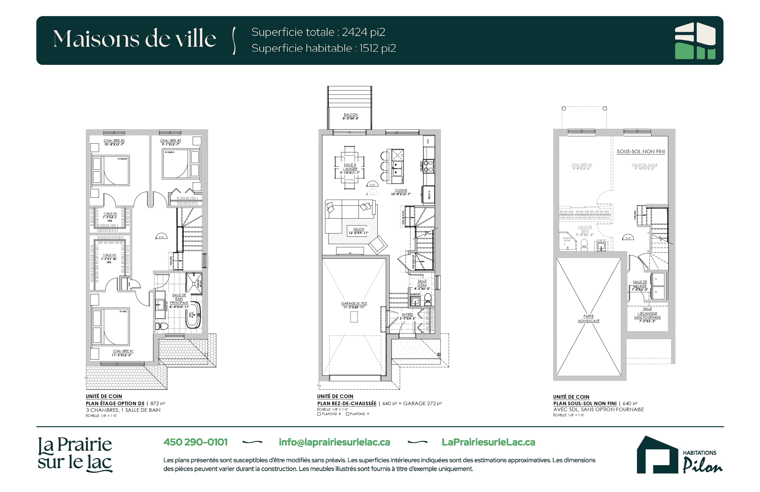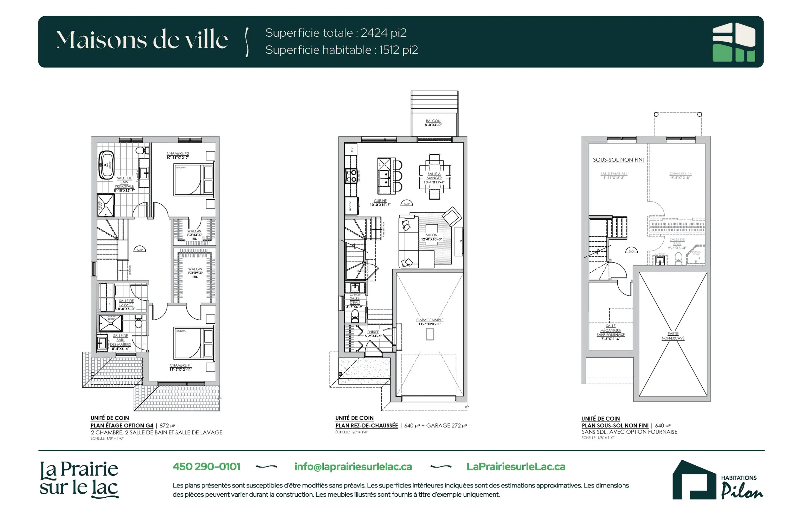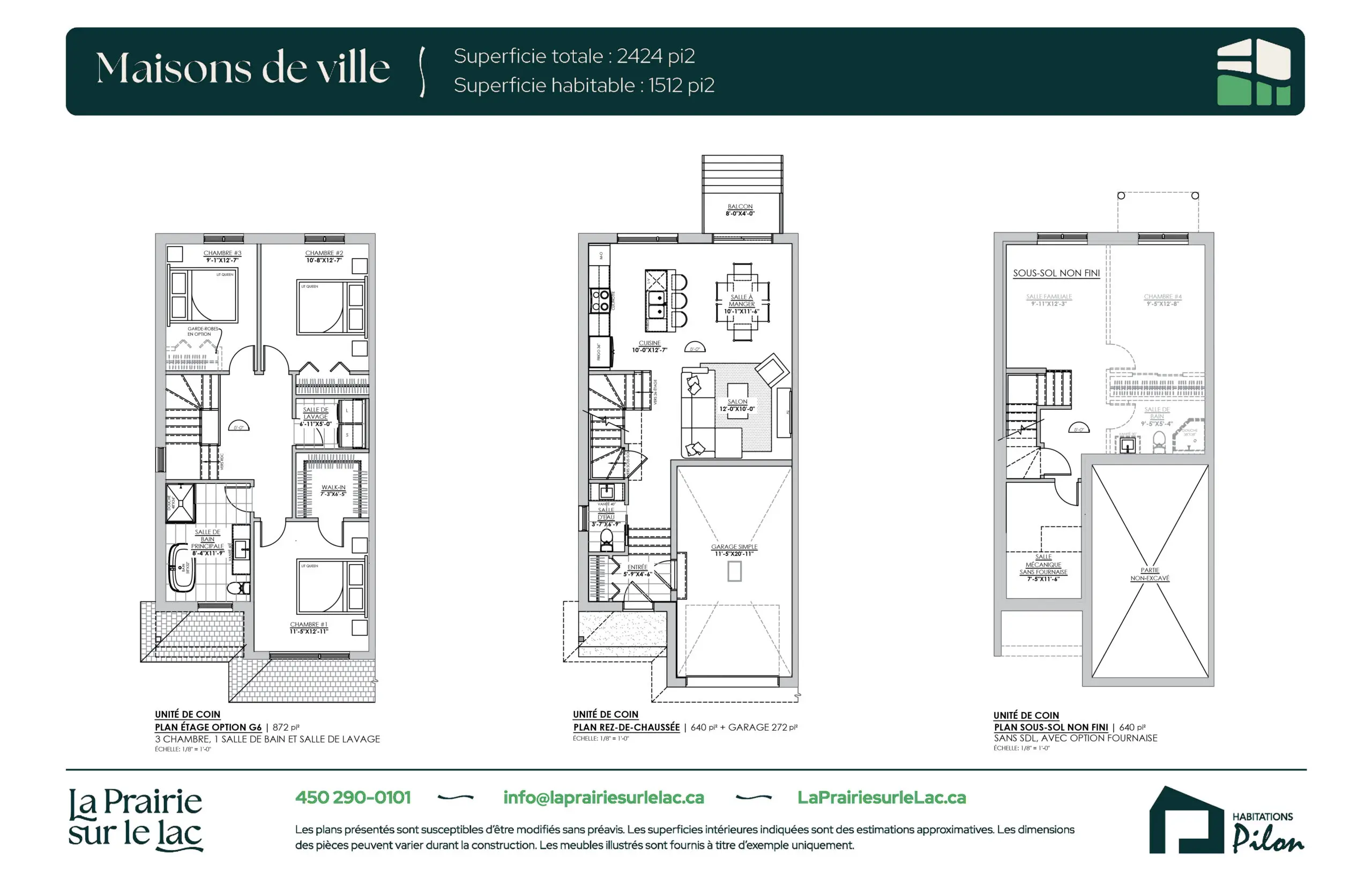 Grâce à huit configurations intérieures, vous pouvez personnaliser votre espace en fonction de vos besoins. Selon le modèle choisi, il est possible d’aménager jusqu’à trois chambres et deux salles de bain à l’étage. Le sous-sol polyvalent offre également plusieurs possibilités d’aménagement : une salle familiale, une salle de bain et de une à deux chambres. La salle de lavage peut être installée à l’étage ou au sous-sol, selon la configuration retenue.