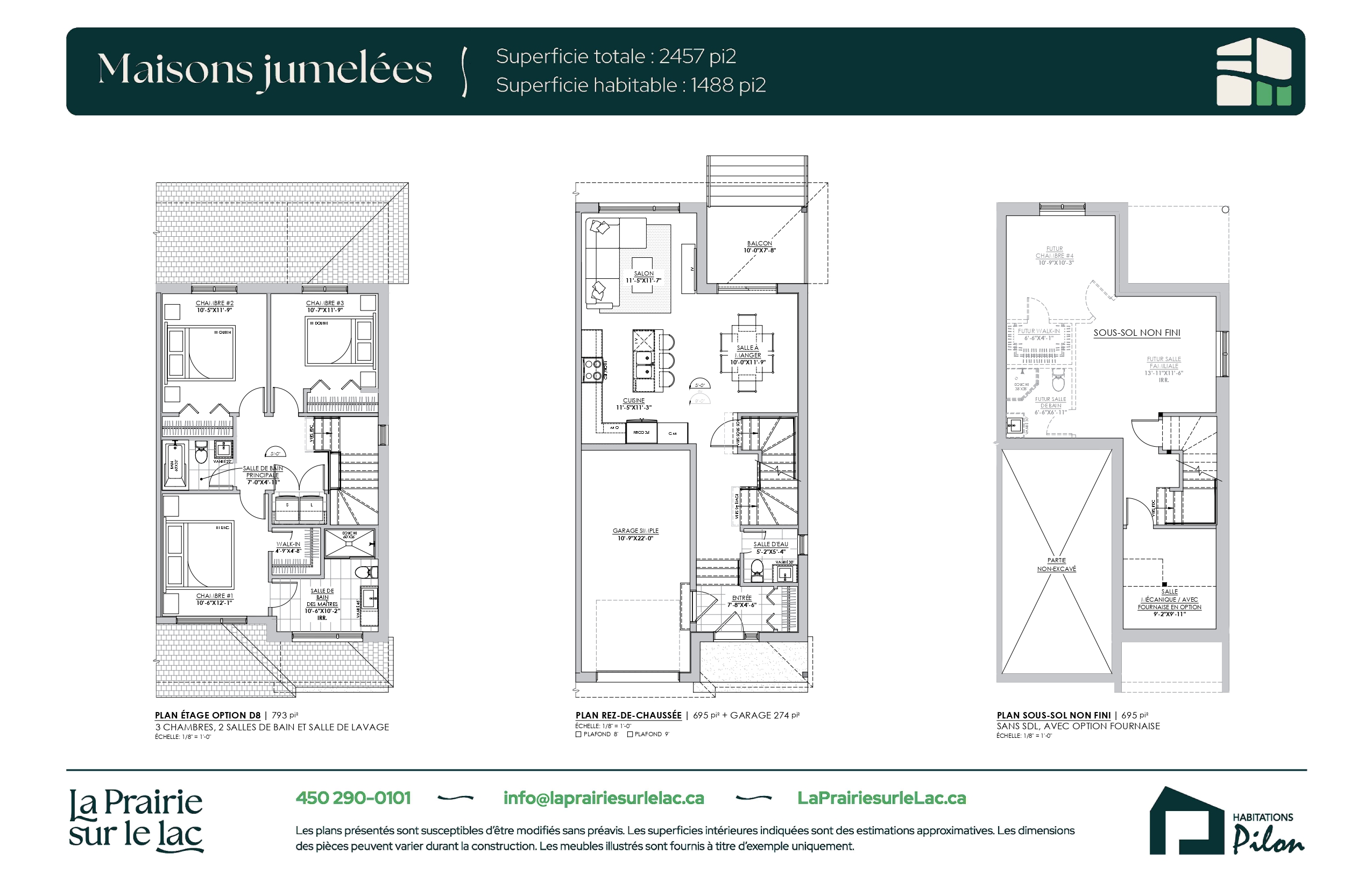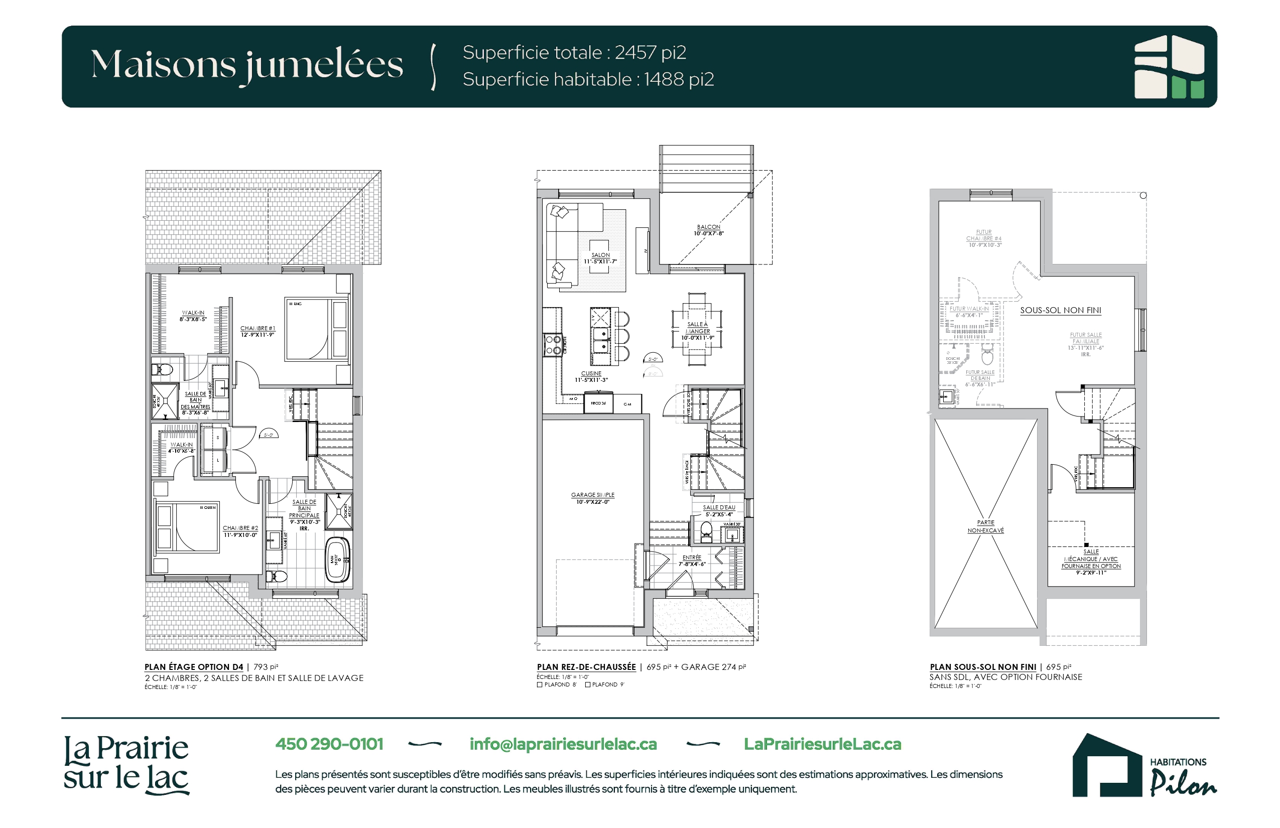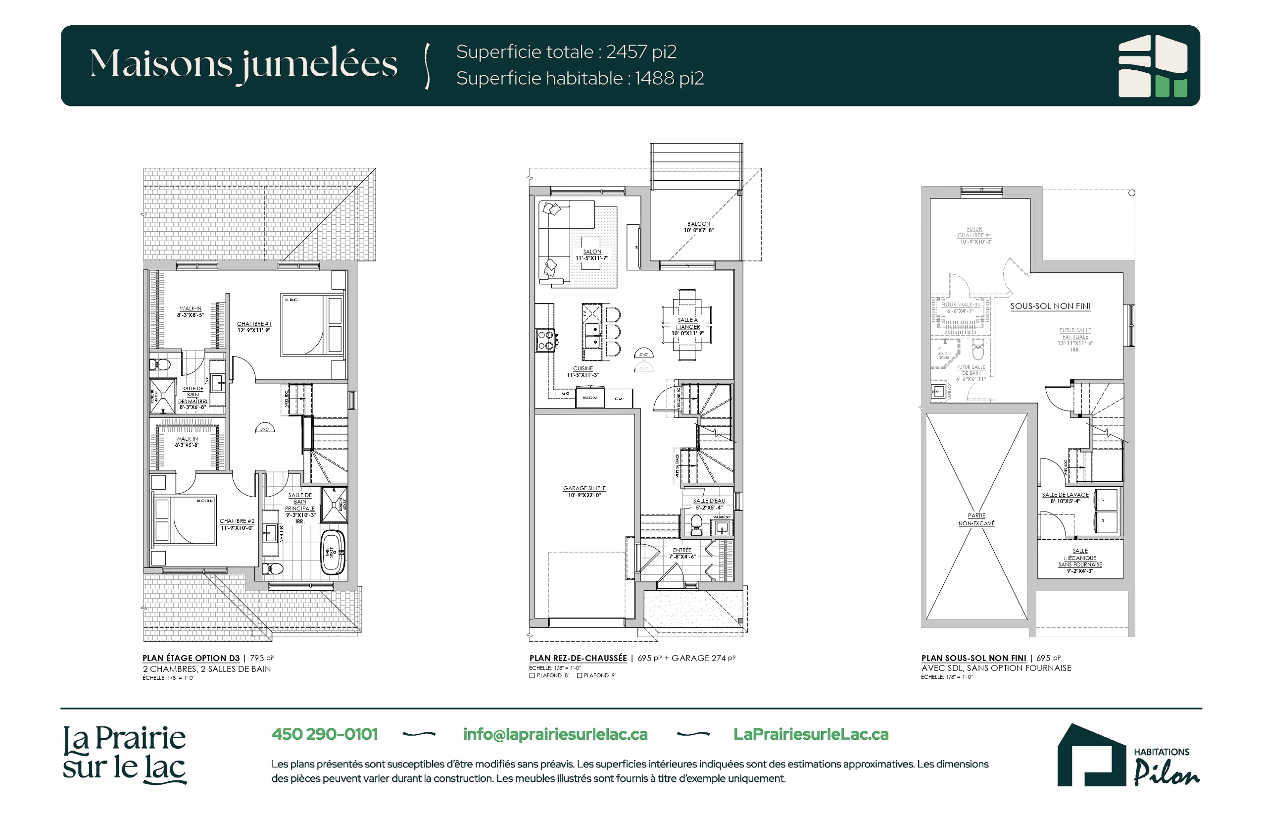 Grâce à huit configurations intérieures, certaines options permettent d’aménager jusqu’à 3 chambres et 2 salles de bain à l’étage. Le sous-sol spacieux offre également de nombreuses possibilités et peut comprendre une salle familiale, une salle de bain, une chambre avec walk-in et la flexibilité d’y ajouter une chambre supplémentaire. L’aménagement de la salle de lavage est possible à l’étage ou au sous-sol, selon la configuration retenue.