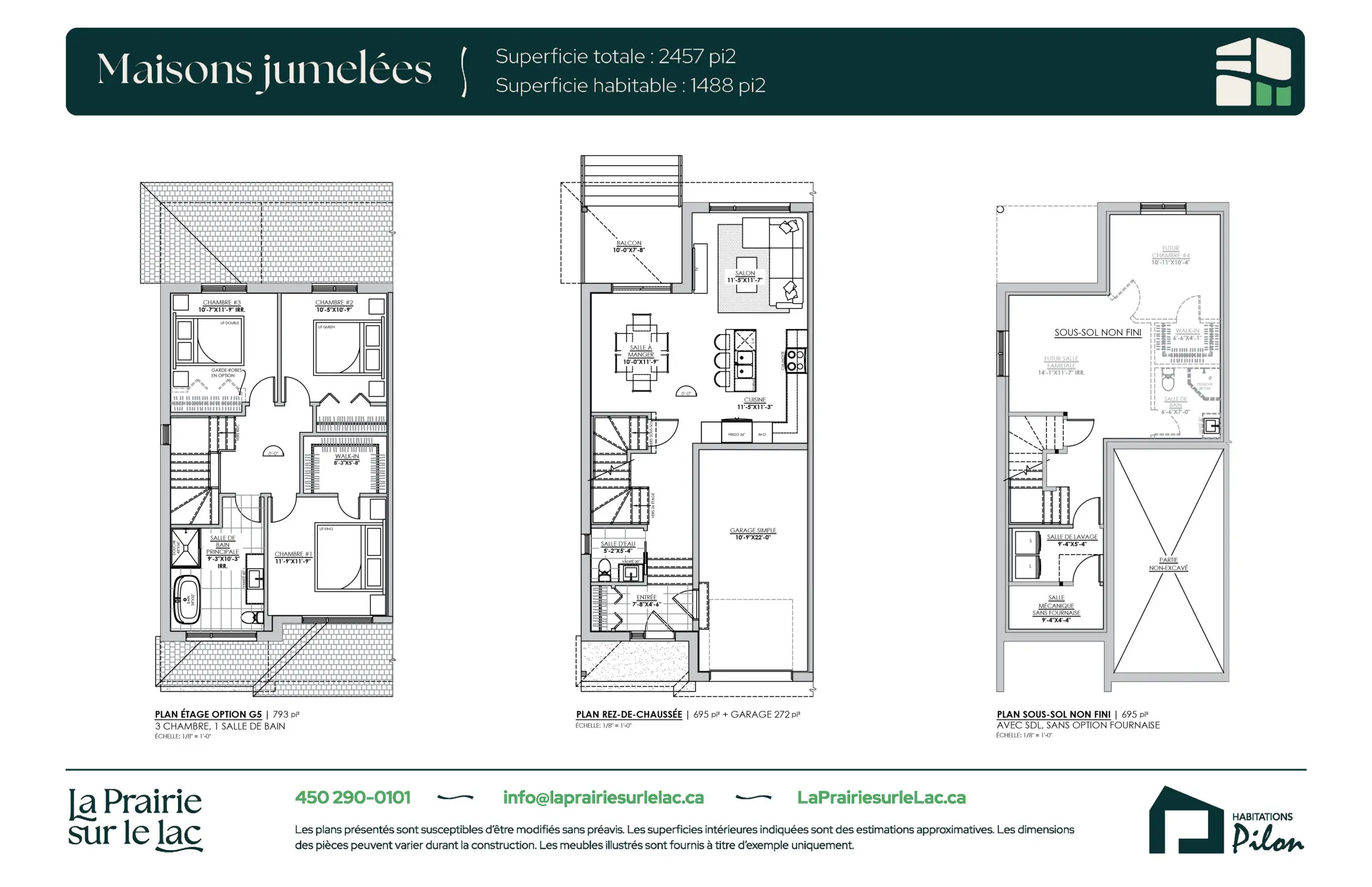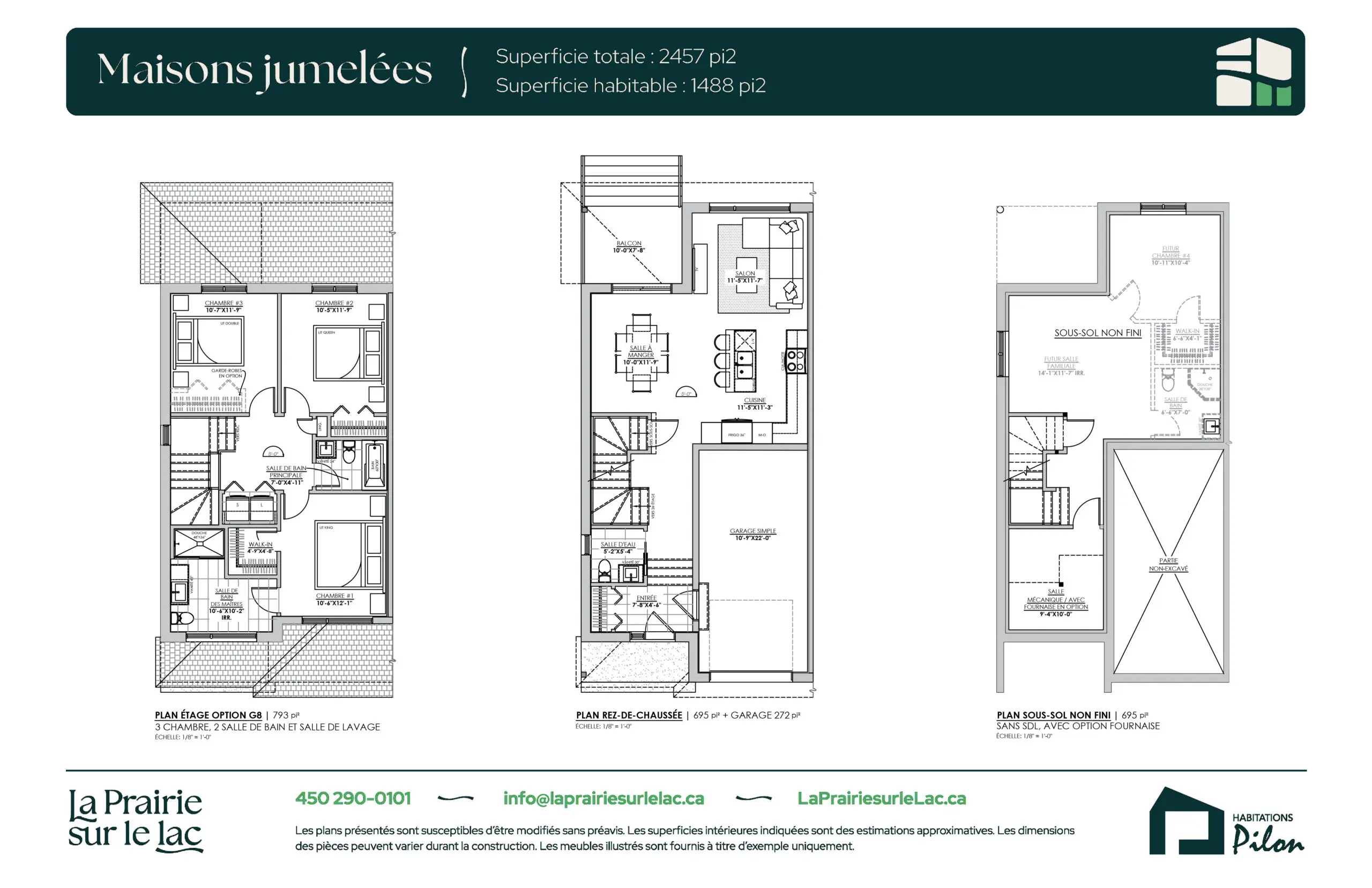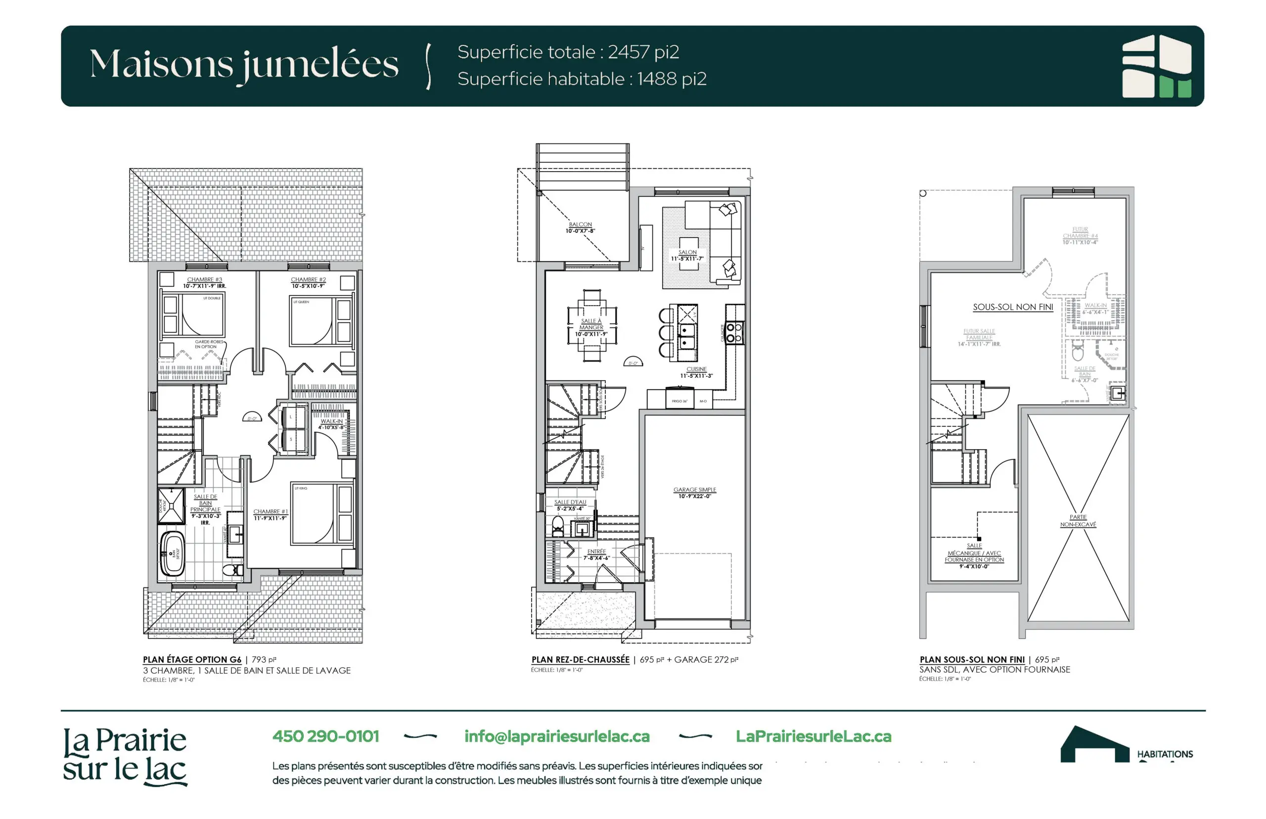 Grâce à huit configurations intérieures, certaines options permettent d’aménager jusqu’à 3 chambres et 2 salles de bain à l’étage. Le sous-sol spacieux offre également de nombreuses possibilités et peut comprendre une salle familiale, une salle de bain, une chambre avec walk-in et la flexibilité d’y ajouter une chambre supplémentaire. L’aménagement de la salle de lavage est possible à l’étage ou au sous-sol, selon la configuration retenue.